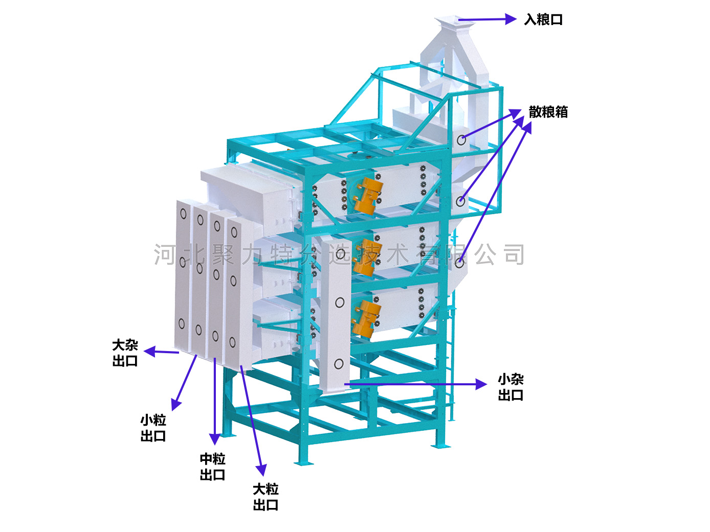 2、整機結構緊湊,操作簡便,清機方便,能有效防止混雜;