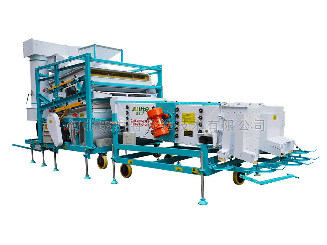 高粱篩選組合設(shè)備由雙體脫殼機(jī)、低速無破碎提升機(jī)、復(fù)式比重清選機(jī)、雙篩箱振動篩組成。